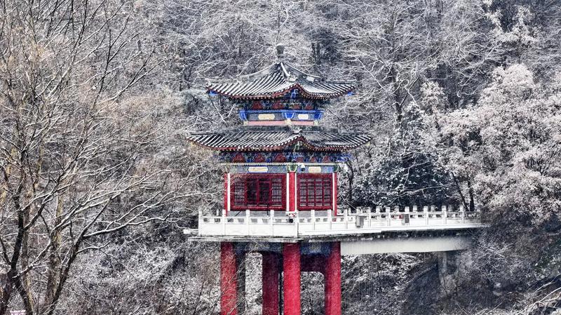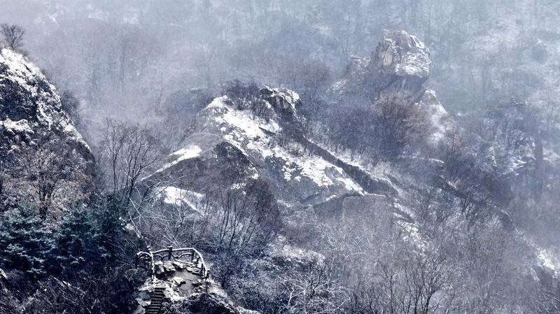 12月12日,翠華山迎來(lái)今冬第二場(chǎng)降雪,連綿起伏的山巒被皚皚白雪盡數(shù)包裹,原本雄奇的峰巒平添幾分婉約之態(tài),漫天飛絮般的雪花簌簌飄落,與嶙峋石海、巍峨翠華峰、澄澈天池相映成趣,將山間景致暈染成一幅幅渾然天成的冰雪山水畫卷。