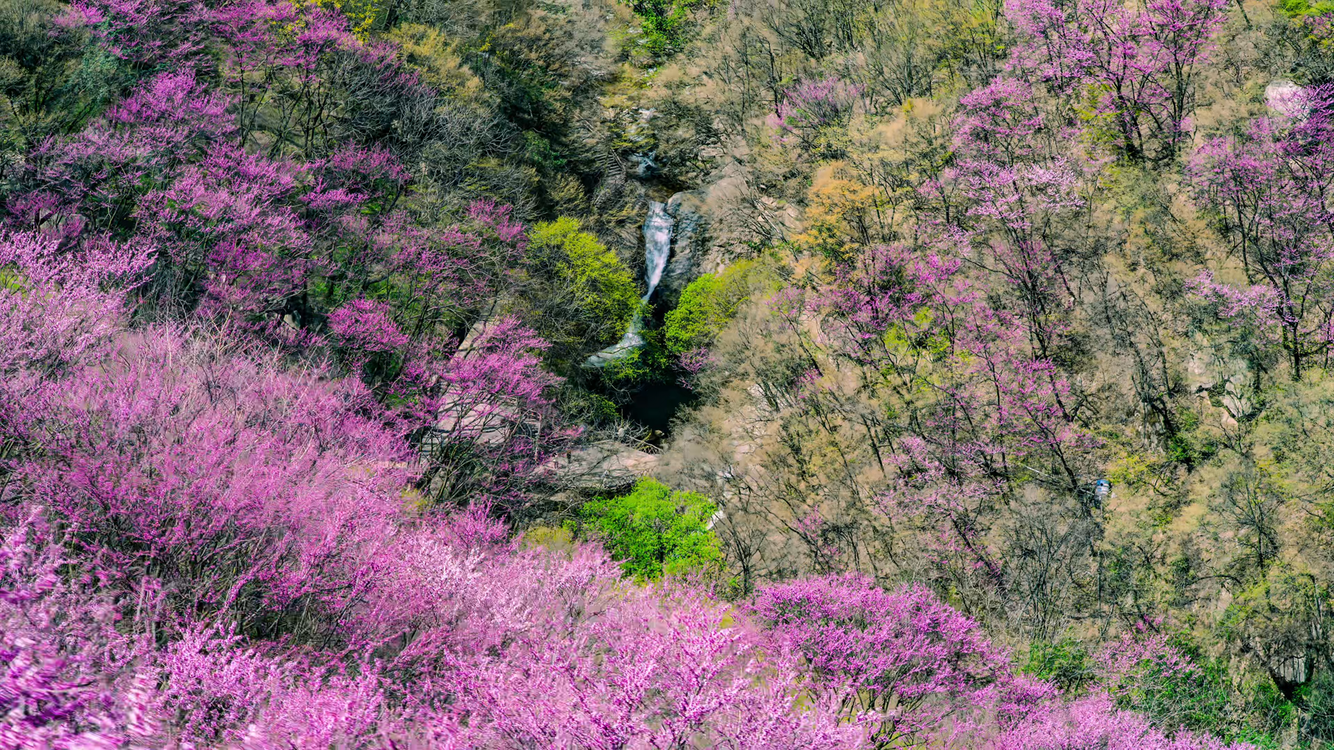央廣網(wǎng)西安4月10日消息(記者侯凱奇)春回秦嶺,萬物競(jìng)發(fā)。近日,秦嶺北麓的陜西太平國家森林公園內(nèi),萬畝紫荊花沿山勢(shì)層疊綻放,燦若云霞,與山間飛瀑流泉交相輝映,繪就一幅生機(jī)盎然的春日畫卷,吸引八方游客紛至沓來。